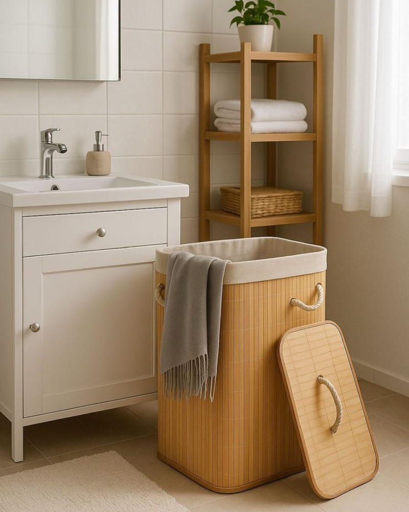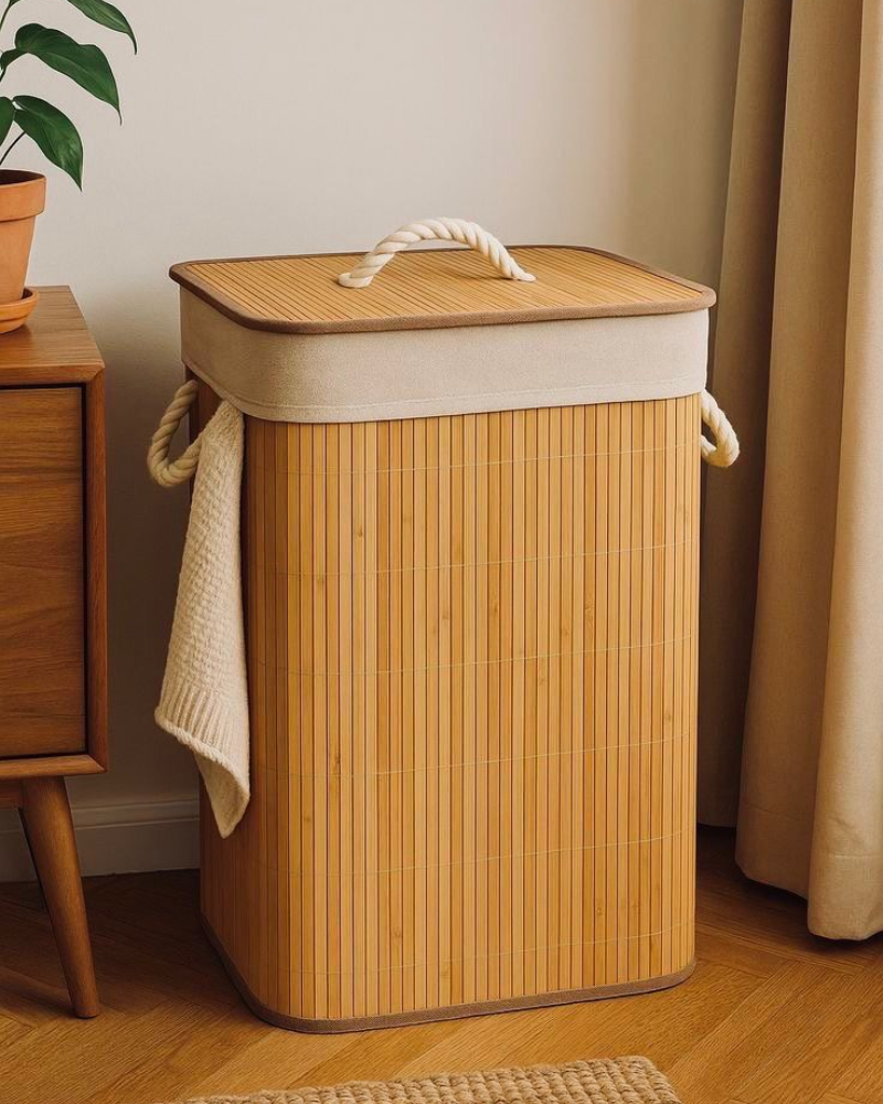 Mantén tus espacios ordenados con estilo gracias a este cesto organizador de bambú. Su diseño minimalista y natural lo hace perfecto para baños, dormitorios, lavanderías o habitaciones infantiles. Incluye tapa con asa y forro interior de tela, ideal para guardar ropa, juguetes, mantas u