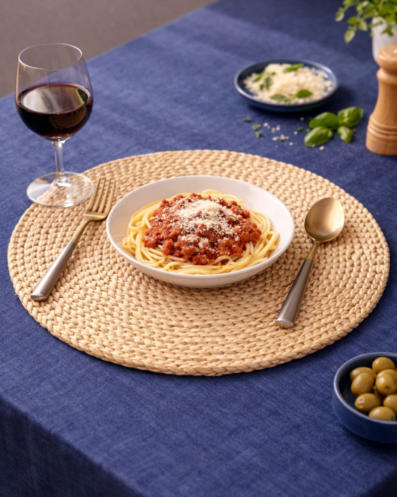 Dale un toque cálido y moderno a tu mesa con este individual tejido de diseño natural. Perfecto para elevar la presentación de tus comidas y decorar tus espacios con un estilo minimalista.