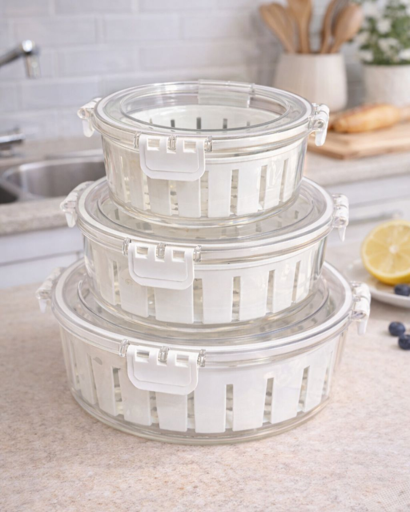 Juego de 3 recipientes con escurridor