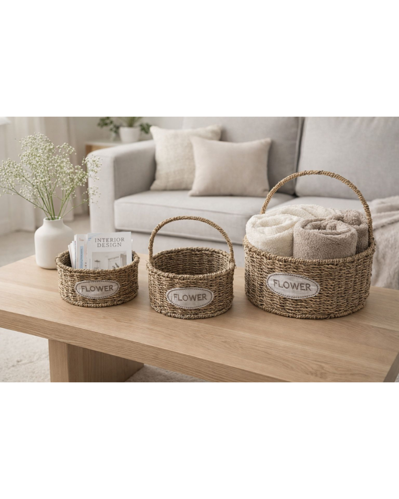 Dale un toque cálido, elegante y natural a tu hogar con este hermoso set de canastas tejidas. Su diseño rústico y minimalista es perfecto para decorar salas, baños o dormitorios, manteniendo todo organizado con estilo.