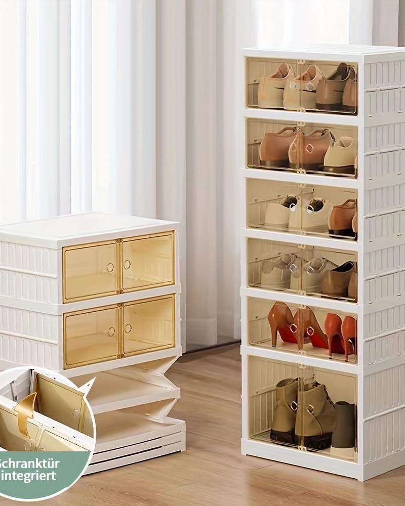 Pon tus zapatos perfectamente en una caja de zapatos apilable de plástico y organizarlos, se pueden colocar en la sala de estar, pasillo, dormitorio, armario, o incluso en una esquina donde el espacio esté apretado.